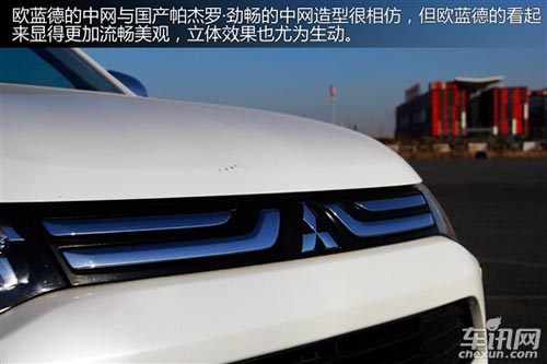 三菱車系中網處的設計總是能夠輕易的將Logo襯托出來,歐藍德的中網與國產帕杰羅·勁暢的中網造型很相仿,但歐藍德的看起來顯得更加流暢美觀,立體效果也尤為生動,如果國產后仍保持這種原汁原味兒,相信對于一些套娃式設計的車型來說,歐藍德的外觀優勢可以增加不少的購買對比率。