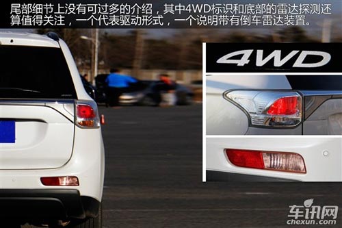 尾部設計上,連接兩側尾燈的中央鍍鉻裝飾條猶如一條分水嶺,將上下層次感表現的很分明。缺點是排氣管處的消聲器暴露出來這是多數SUV車型所露怯的地方,歐藍德也不例外。
