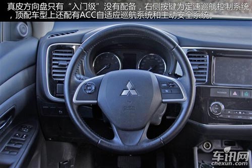 配置上,真皮方向盤只有最低配車型中沒有配備,多功能按鍵除了頂配車型配有ACC自適應巡航系統和主動安全系統外,其余車型的右側按鍵只是定速巡航控制區,并且是全系標配。