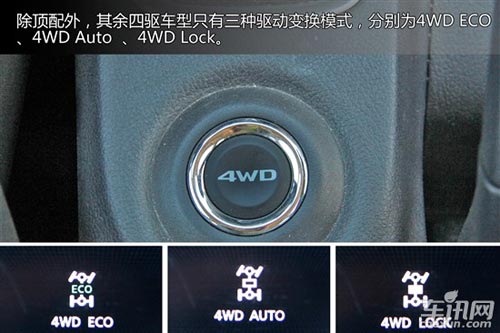 駕駛操控上,歐藍德的適時四驅系統提供三種驅動變換模式,確切的說也就是兩種,ECO模式時通常為兩驅狀態下行駛,Auto模式時還要要看具體在何種路況下,不過大多數情況依然是兩驅狀態,Lock模式就更不用多說了,鎖定在四驅模式下,在非極限越野道路上行駛,多數情況下還是可應對的。
