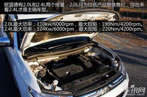 歐藍德共有兩種排量車型,2.0L和2.4L。個人看來歐藍德與國內眾多合資SUV相比,主銷高排量而非低排量,從賬面數據上看動力參數相差并不是很大,無外乎在操控配置上有所添加,滿足日常駕駛需求足夠。