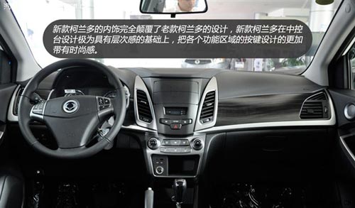 全新柯蘭多的中控臺可以說是完全脫離了老款柯蘭多中控臺的樣式,在這里也真的體現了雙龍設計師在該車上是花了不少的心思,層次感極強的基礎上應用了大量的銀色裝飾與烤漆元素,并且從做工方面來說,與之前比較也是有明顯的提升。
