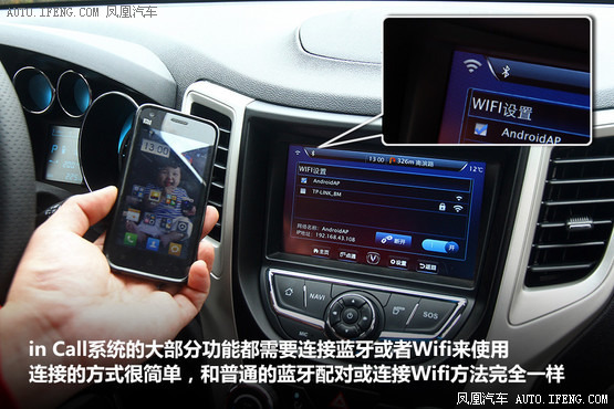 in Call系統(tǒng)的大部分功能都需要連接藍(lán)牙或者Wifi來(lái)使用,連接的方式很簡(jiǎn)單,和普通的藍(lán)牙配對(duì)或連接Wifi方法完全一樣。當(dāng)藍(lán)牙和Wifi連接成功后,在屏幕的左上角會(huì)出現(xiàn)對(duì)應(yīng)的標(biāo)識(shí)。