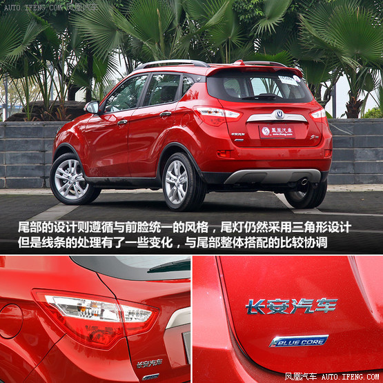 尾部的設(shè)計(jì)則遵循與前臉統(tǒng)一的風(fēng)格,尾燈仍然采用三角形設(shè)計(jì),但是線條的處理有了一些變化,與尾部整體搭配的比較協(xié)調(diào)。在車尾兩側(cè)的裝飾條上設(shè)計(jì)了一個(gè)長(zhǎng)安的LOGO,這個(gè)細(xì)節(jié)的處理比較巧妙,就是這小小的徽標(biāo),為尾部增添了不少的魅力。