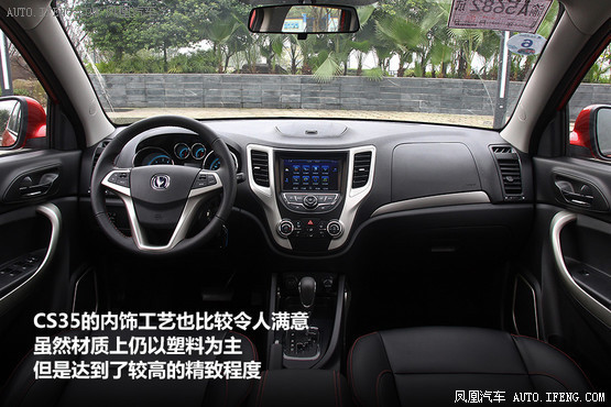 內(nèi)飾方面,CS35的工藝也比較令人滿意,雖然材質(zhì)上仍以塑料為主,但是達(dá)到了較高的精致程度,并且設(shè)計(jì)上也很具美感,再加上新加入的in Call系統(tǒng),讓CS35的內(nèi)飾看起來(lái)更加前衛(wèi)了。