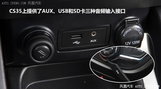 CS35提供的配置也比較豐富,比如電動(dòng)折疊后視鏡、倒車影像這樣的功能在實(shí)際用車中是非常實(shí)用的。CS35上還提供了AUX、USB和SD卡三種音頻輸入接口,最大程度的滿足乘客收聽音樂(lè)的需求,當(dāng)然in Call系統(tǒng)提供的藍(lán)牙連接方式,也可以用來(lái)收聽手機(jī)中的音樂(lè)。