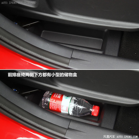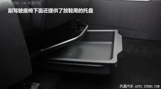 而在一些想不到的地方CS35也提供了儲(chǔ)物空間,比如前排座椅兩側(cè)下方都有小型的儲(chǔ)物盒,在副駕駛座椅下面還提供了放鞋用的托盤,這樣穿高跟鞋的女士就可以將開車穿的平底鞋放在這里隨時(shí)來(lái)更換了。從儲(chǔ)物空間的情況就能夠看出,CS35在實(shí)用性方面有其獨(dú)特的優(yōu)勢(shì)。