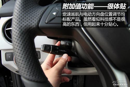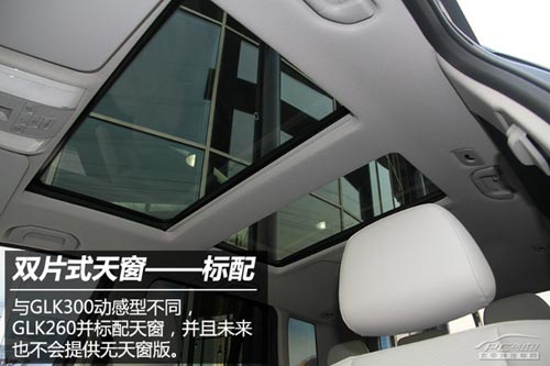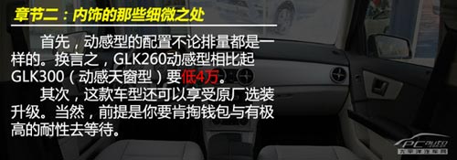 經過一番體驗之后得出一個結論,動感型這個配置中,GLK260與GLK300均保持一致。作為破40萬的入門級車型,GLK260并沒有出現所謂的“縮水”現象,這是可以肯定的。