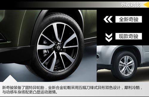 車身側面,全新奇駿一改現款那種直棱直角的感覺,線條流暢且柔美,配上五幅刀鋒式合金輪轂整體頗顯年輕氣息。此外,車頂行李架也回歸簡約實用的樣式。
