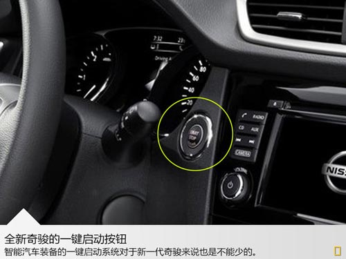 相對于現款奇駿缺少的一鍵啟動系統、電子駐車系統以及感應式電動尾門等時下流行的舒適智能裝備,一個不少的在新一代奇駿全部出現了。