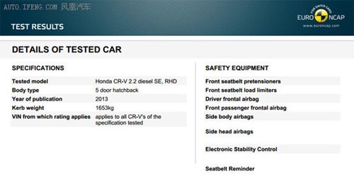 作為一款日系熱銷SUV車型,CR-V最重要的一個熱銷原因就是其出色的安全碰撞成績,在E-NCAP碰撞測試中依然可以獲得五顆星的好成績,值得表揚。它的優勢同樣體現在對于成人和兒童的保護上,對于車外行人的保護表現平平。