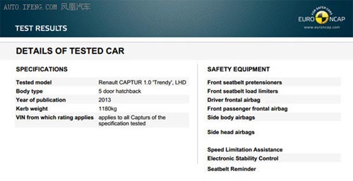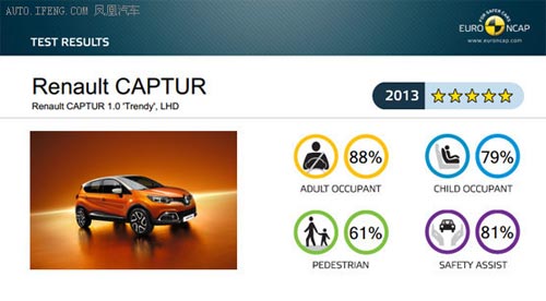雷諾Captur這個名字雖然看上去并不是很熟悉,但是它前不久剛剛在國內某雷諾4S店內現身,所以很有可能在近期在國內上市。這款跨界風格濃郁的SUV車型擁有足夠個性化的外觀造型,同時E-NCAP碰撞測試成績也十分出色,達到了五顆星的高安全分數。它各方面的表現都比較均衡,表現最為突出的并不是成人保護,而是安全輔助系統的配備。