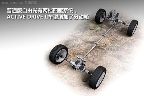 而更高一級的自由光ACTIVE DRIVE II車型還在這套四驅系統的基礎上增加了分動箱,即可以在必要時放大發動機扭矩達2.92倍,保證了在惡劣環境下,動力不會成為障礙。