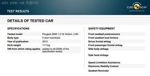 在2013年E-NCAP碰撞測試的車型名單上,獲得五顆星評級的還真是不少,這款已經在國內正式露面的小型SUV標致2008也獲得了出色的成績。2008在行人安全保護方面更有心得,成績普遍比其他幾位都更加出色。只不過在對成人安全保護上,并沒有獲得較高的分數,沒有得到90分。