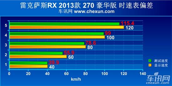 0-100公里/小時加速的過程中,關閉ESP,將轉速控制在3000rpm起步,前置前驅的RX270的輪胎出現了較為明顯的打滑,并且引發打滑的時間有些偏長。而將近2噸的車身重量也能很好的給車頭施加壓力。總體來說,起步姿態還算中規中矩。