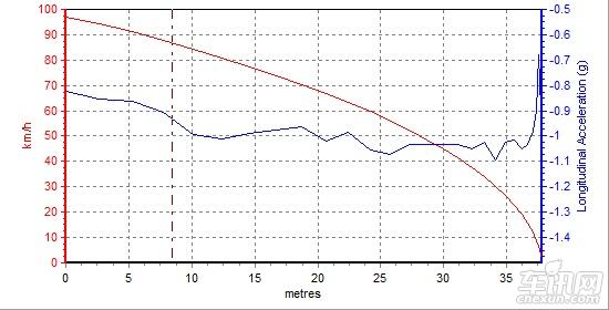 最終測得100-0公里/小時的制動時間為40.48s,對于如此大體型的SUV來說,這樣的制動能力算得上出色,四條235/60 R18的普利司通輪胎功不可沒。