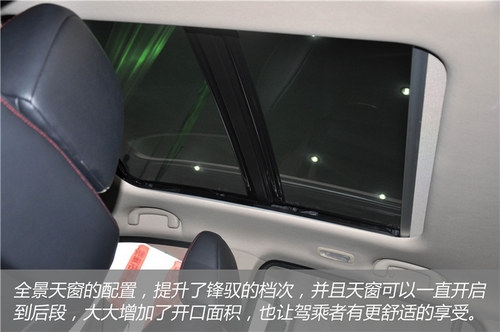 對于鋒馭來說不得不提的還有全景天窗,有特色的是鋒馭獨有的雙開天窗,其中遮陽簾也為電動調(diào)節(jié)。