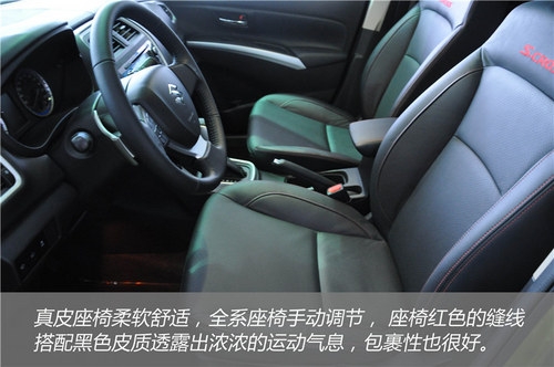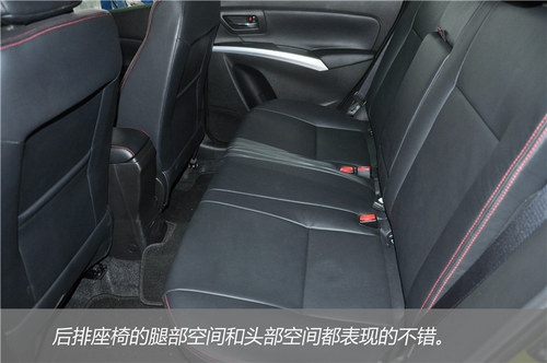 座椅紅色的縫線搭配黑色皮質(zhì)透露出濃濃的運動氣息,其舒適度和兩側(cè)的包裹也都十分到位,而座椅調(diào)節(jié)只提供手動模式。而2620mm的軸距在同級別中表現(xiàn)一般。