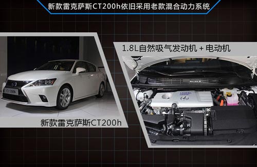 動力方面,雷克薩斯新款CT200h仍沿用了現款車型所搭載的第二代油電混合動力系統,是由一臺排量為1.8L的發動機+電動機+鎳氫電池組成。其中 1.8L VVT-i汽油發動機的最大功率為73kW,最大扭矩為142N·m,電動機功率為60kW,扭矩則為207N·m。傳動部分,新款CT200h匹配 CVT無級變速器。此外,新車的0到100公里加速時間為10.3秒,百公里油耗僅為4.6L。