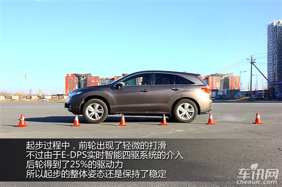 在0-100公里/小時(shí)加速的過程中,關(guān)閉VSC,將變速箱放置在S擋,將發(fā)動(dòng)機(jī)轉(zhuǎn)速提升到2000rpm左右,松開制動(dòng)踏板,前輪出現(xiàn)了輕微的打滑,不過由于E-DPS實(shí)時(shí)智能四驅(qū)系統(tǒng)的介入,后輪得到了25%的驅(qū)動(dòng)力,所以起步的整體姿態(tài)還是保持了穩(wěn)定。