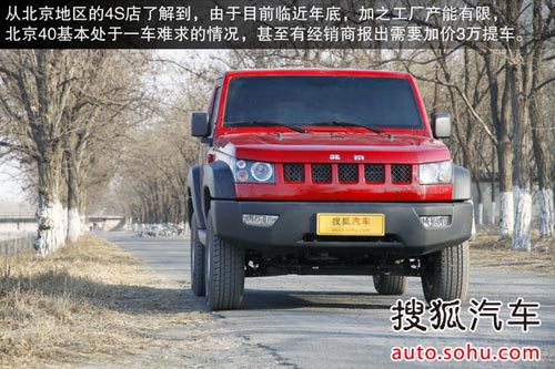 在開始本次越野測試之前,我們先來了解一下北京40的市場行情,從北京地區的4S店處了解到,由于目前臨近年底,加之工廠產能有限,北京40基本處于車源緊缺的情況,甚至我們了解到一家北京汽車4S店報出加價3萬元提車的消息,所以如果您看中了這款車再等一等也許會更劃算。