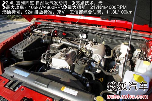 首先我們先來看看這款北京40在公路上的駕駛表現,動力方面搭載了一臺2.4L發動機,代號為G4CA,由沈陽新光提供,最大功率為105kW/4800rpm,最大扭矩217N·m/4000rpm,技術上沒有什么優勢,參數水平在同級自主車中處于中等水平,目前還沒有得到要加入其它動力系統的消息。