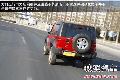 方向盤轉向力度偏重并且路感不算清晰,不過這種硬派越野車并不是用來追求駕控感受的。整體來講在城市道路中駕駛北京40并不輕便,不過對于那些喜歡硬派、追求狂野的朋友來講,您肯定也會說:這都不叫事兒~