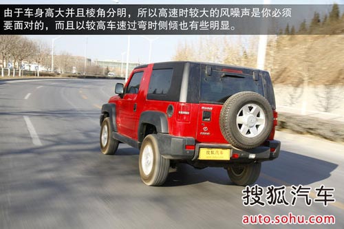 由于車身高大并且棱角分明,所以高速時較大的風噪聲是你必須要面對的,而且以較高車速過彎時側傾也有些明顯,當然這樣的水平也處于同級越野車中的正常水平。