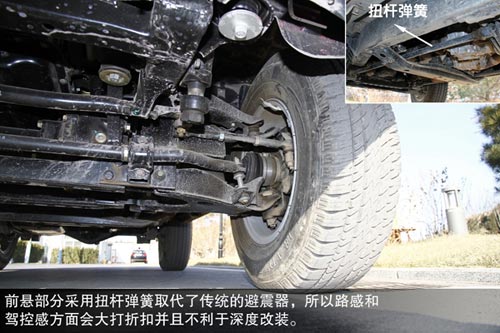 不過由于前懸部分采用扭桿彈簧取代了傳統的避震器,所以路感和駕控感方面會大打折扣,并且如果您想把車輛升高或是深度改裝,這樣的結構可能會讓改裝過程變得更加困難。