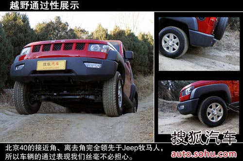 在越野測試中,場地內還有一個較深的土坑,這會對車輛的接近角以及離去角有著很大的考驗,不過要知道北京40在這兩項上是完全超越Jeep牧馬人的,所以在下坑之前我們還是比較有底氣的,事實證明北京40還是可以輕松面對這些陡坡的。