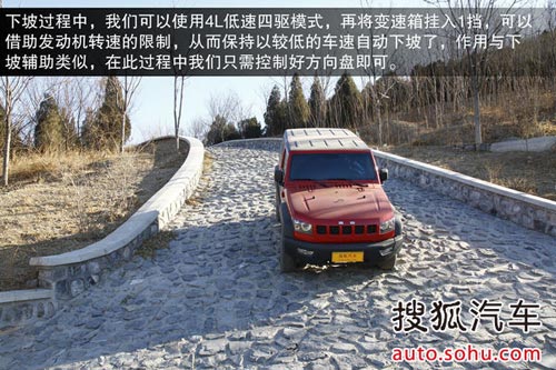 下坡過程中,我們可以使用4L低速四驅模式,再將變速箱掛入1擋,可以借助發動機轉速的限制,從而保持以較低的車速自動下坡了,作用與下坡輔助類似,在此過程中我們只需控制好方向盤即可。