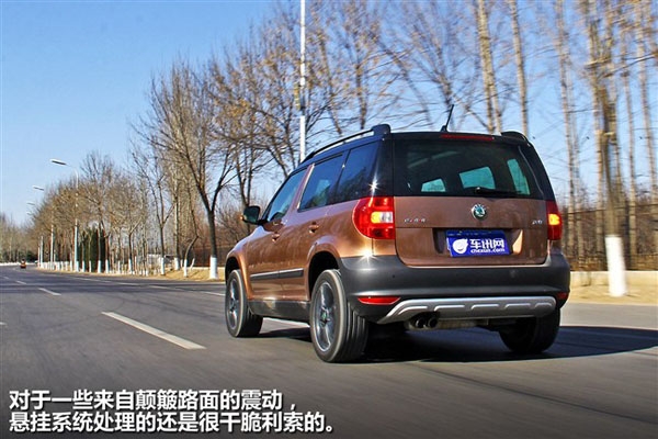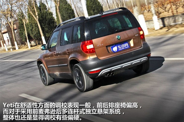 Yeti在舒適性方面的調校表現一般,前后排座椅偏高,而對于采用前麥弗遜后多連桿式獨立懸架系統,整體也還是顯得有些偏硬。但對于一些來自顛簸路面的震動,懸掛系統處理的還是很干脆利索的。