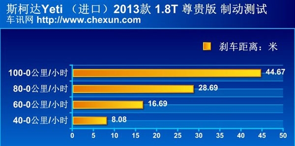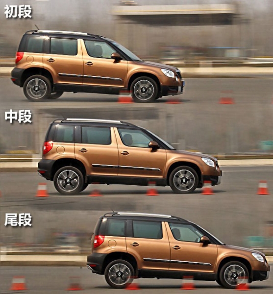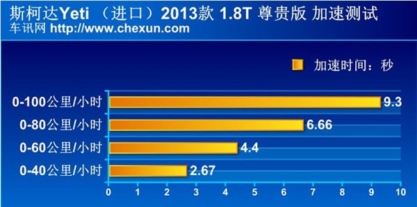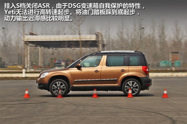 接下來是加速測試環節,掛入S檔關閉ASR,由于DSG變速箱自我保護的特性,Yeti無法進行高轉速起步。將油門踏板踩到底起步,動力輸出遲滯感比較明顯,最終測得百公里平均加速成績為9.3秒。