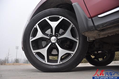 斯巴魯森林人的車頂配備了簡易的行李架,出行游玩時可以將自行車綁在上邊一起帶走。輪胎是普利司通的,尺寸是225/55 R18,賬面數據看,胎的大小是夠了,但是胎寬稍顯不足。輪轂的形狀被鑄造成了5個“Y”字,視覺沖擊力極強。
