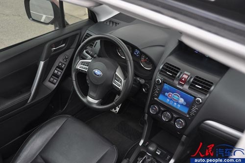 內飾的主色調選用了最安全的黑色,這種配色的好處就是適合各個年齡段的車主,可是內飾整體全部選用黑色多少顯得有些沉悶。這里值得重點提及的是斯巴魯森林人的內飾用料問題,30多萬的進口車型,除了皮質座椅外,其他地方均給人強力的塑料感,雖然比上一代有了很大的改進,但是依然不能令人滿意。