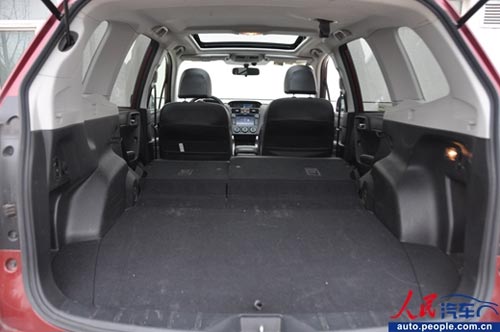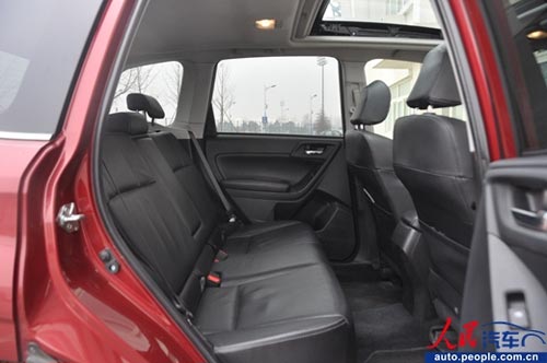 得益于軸距加長,原本森林人就非常寬裕的后排腿部空間變得更加夸張,肩部和頭部空間也非常理想。全時四驅的后傳動軸也沒有明顯影響后排地板,中間乘客無需尷尬地岔開雙腿了。
