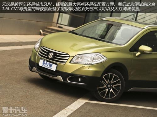 長安鈴木鋒馭在外觀方面與常見的城市SUV有著很多共同的特點,比如環繞車身的雙色包圍,車頂上并不突出的行李架等等。但其最大的特點還是在配置方面,例如我們此次測試的這臺1.6L CVT尊貴型的鋒馭,它配備了像雙光氙氣大燈、大燈清洗裝置、倒車影像、電動折疊后視鏡以及后視鏡加熱等諸多豪華配置,在同級車型里面可以說是非常少見。