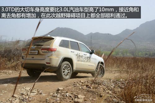 在實(shí)地越野測(cè)試中,大切諾基作為一臺(tái)城市型SUV來(lái)說(shuō),離地間隙、接近角和離去角算的上是優(yōu)秀了,所以在普通坑洼較多的路面你還可以玩一把飛馳,另外需要注意的是深溝還是必須避開(kāi),尤其的是下坡時(shí),對(duì)于3.0TD柴油版車(chē)型沒(méi)有配備空氣懸掛讓我們感覺(jué)很遺憾。不過(guò)就整體來(lái)說(shuō)大切諾基的越野能力在城市SUV中算是出色了,3.0TD的爆發(fā)力比我們想象中要強(qiáng)大很多,要挑戰(zhàn)更極限的越野,只需把嬌氣的公路輪胎換掉即可。