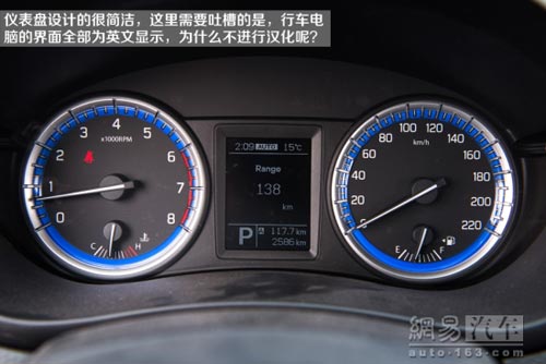 然而也有需要遭到吐槽的地方,首先儀表盤上的行車電腦界面全部為英文顯示,作為一輛國產車型,這種表現讓人有些無法理解。其次多媒體系統只具備SD卡和AUX外接口,更加方便的USB接口并不具備,因此為聽歌和給手機充電上帶來了一定的麻煩。