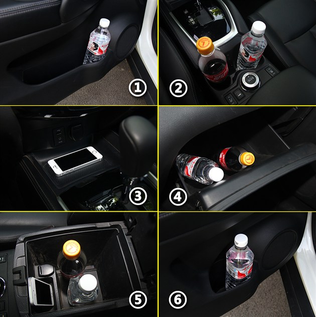 | ② | 中控臺(tái)水杯架:放入水瓶會(huì)有余量晃動(dòng),帶有制冷功能 |