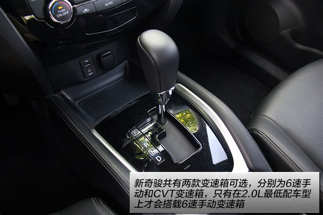 新奇駿分別搭載了2.5L和2.0L兩款發(fā)動(dòng)機(jī),2.0L發(fā)動(dòng)機(jī)的最大輸出功率為110kW,峰值扭矩為200Nm,而排量相對(duì)較大的2.5L發(fā)動(dòng)機(jī)的最大輸出功率為137kW,峰值扭矩可達(dá)233Nm,這一數(shù)據(jù)相比老款車型的135kW、227Nm均有小幅度提升,當(dāng)然這微乎其微的數(shù)據(jù)提升在日常的駕駛中幾乎是完全感覺(jué)不出來(lái)的。在變速箱方面,新車配備了6速手動(dòng)和XTRONIC CVT變速箱,只有2.0L兩驅(qū)時(shí)尚版配備了6速手動(dòng)變速箱,其它車型均配備CVT變速箱。