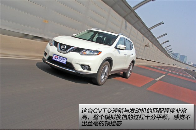 新車共有兩款變速箱可選,分別為6速手動(dòng)變速箱和XTRONIC CVT變速箱,僅有2.0L兩驅(qū)時(shí)尚型(最低配車型)搭載了6速手動(dòng)變速箱,其它2.0L和2.5L車型均采用了XTRONIC CVT變速箱。這次的測(cè)試車采用的也是XTRONIC CVT變速箱,該變速箱與發(fā)動(dòng)機(jī)的匹配度非常高,整個(gè)模擬換擋的過(guò)程絲毫感覺(jué)不到頓挫和不適。