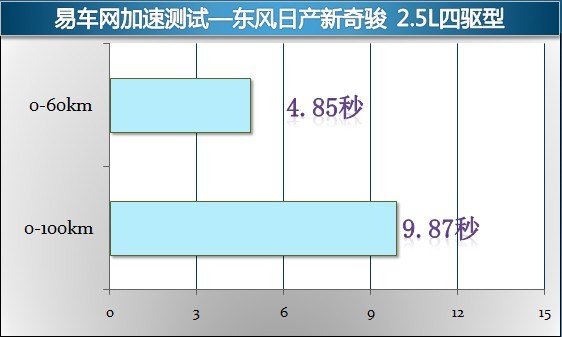新車在動(dòng)力方面相比老款有了極其細(xì)微的提升,最大輸出功率有原來(lái)的135kW上升至137kW,漲幅僅為2kW,而峰值扭矩從原來(lái)的227Nm提升至233Nm,漲幅也僅為6Nm。這種細(xì)微的提升在實(shí)測(cè)中果然體現(xiàn)不出什么。在0-100km/h的加速實(shí)測(cè)中,新奇駿的最終成績(jī)?yōu)?.87秒,由于該車為四驅(qū)車型并且動(dòng)力輸出相對(duì)平緩,所以在起步的過(guò)程中輪胎并沒(méi)有出現(xiàn)明顯的打滑現(xiàn)象,車身姿態(tài)保持的也比較不錯(cuò),并沒(méi)有出現(xiàn)明顯的抬頭現(xiàn)象。