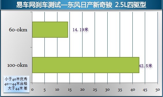 如果只是跑得快而剎不住的話,那豈不是要悲劇了。在100-0km/h的制動(dòng)實(shí)測(cè)中,新奇駿的最終制動(dòng)距離為42.5米,在同級(jí)別中競(jìng)爭(zhēng)對(duì)手中體現(xiàn)出了不錯(cuò)的水平。在全力制動(dòng)的情況下,車身姿態(tài)并沒(méi)有很夸張,只是稍微出現(xiàn)了點(diǎn)頭的現(xiàn)象。