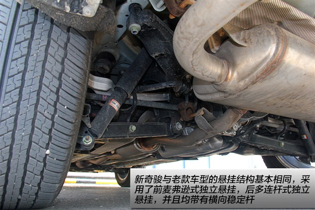 新車的懸掛與老款基本相同,采用了前麥弗遜式獨(dú)立懸掛,后多連桿式獨(dú)立懸掛,前后懸掛均帶有橫向穩(wěn)定桿。偏向于日常駕駛舒適性的懸掛調(diào)校方式也正迎合了新奇駿不斷向城市SUV靠攏的舉動(dòng)。此外,在調(diào)校方面,前后懸掛也體現(xiàn)出了不同,相對(duì)更為柔軟一些的前懸掛能夠很輕松過(guò)濾掉不規(guī)則路面帶來(lái)的顛簸,而后懸掛則相對(duì)偏硬一些。