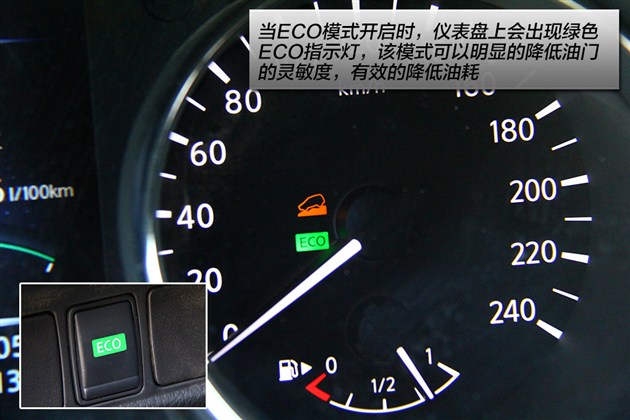 當(dāng)我啟用ECO節(jié)能模式后,原本就溫順的新奇駿則會(huì)徹底變成一個(gè)慢性子,油門的調(diào)校在原來(lái)的基礎(chǔ)上變得更加遲鈍,基本上前段不會(huì)有什么明顯的反應(yīng),直到你踩到油門的中段后才會(huì)感覺(jué)到車輛緩緩的在提速。當(dāng)然這樣的駕駛模式和調(diào)校是處于節(jié)油的目的所考慮的,如果你不在乎油耗的話也就不會(huì)打開ECO模式了。