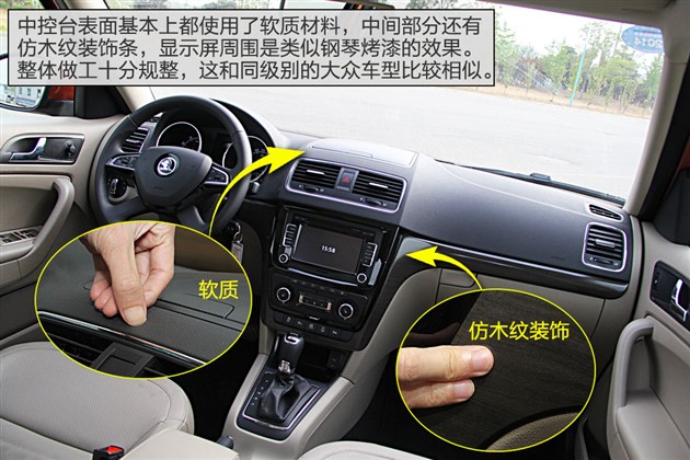 做工方面,野帝和大眾車型有些相似。接縫的處理令人放心,整體挑不出什么大毛病。中控臺使用了大面積的軟質材料,其他部分運用了鋼琴烤漆、仿桃木裝飾等。個人覺得前排扶手區的塑料感有些強,就一款賣到22萬元以上的車來說,用料在同級別里只能算是一般水準。
