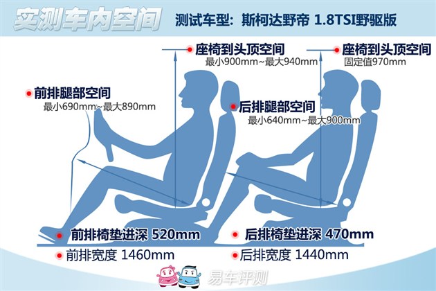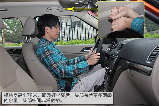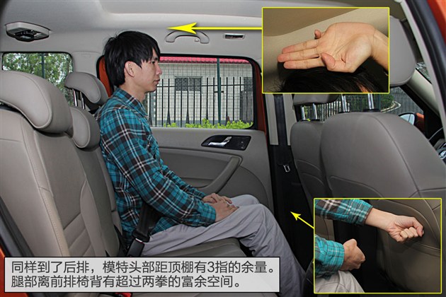 前面說到野帝看上去比同級別車顯小,實際也是如此。車身的長寬高為4275mm(不含備胎)/1793mm/1682mm,軸距為2638mm。盡管該車在進口YETI的軸距上增加了60mm,但比起同胞途觀(軸距:2684mm)來還是略短一些。這說明野帝的空間表現不夠好嗎?我們找來身高1.78米的模特坐在前排,調整好坐姿后,頭部距頂棚有兩拳的余量。盡管前排的坐姿并不低,但頭部空間還是比較寬裕的。來到后排,頭部有三指的余量,腿部有超過兩拳的距離,整體乘坐表現令人滿意。