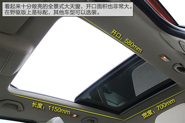 野帝在配置方面基本上和大眾途觀車型看齊。這次的試駕車包括7英寸顯示觸摸屏、雙區自動空調、12向電動座椅調節、座椅加熱等等。可以說,該有的配置一樣不差很齊全。個人比較喜歡野驅版標配的全景天窗,不但尺寸大,而且可開啟的角度也非??捎^。當然除了價格最低的兩款探索版以外,其他車型都可以進行選裝。不太滿意的有中控觸摸屏,分辨率不高,界面設計也不夠美觀。