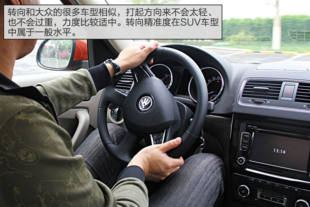 轉向系統采用了電子助力的方式,實際手感和很多大眾車性非常相似。打起方向來不會太輕,轉向力度在一個比較適中的范圍內。